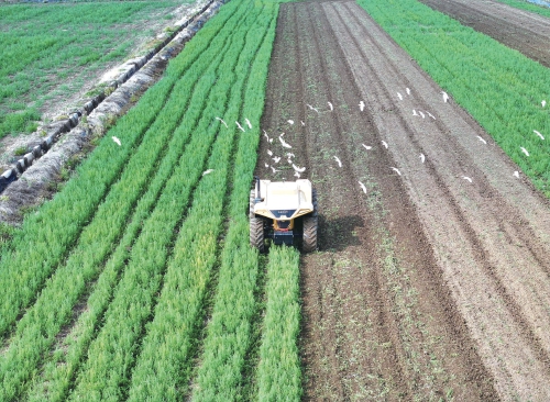 小滿時(shí)節(jié),位于江蘇省淮安市金湖縣的江蘇農(nóng)墾寶應(yīng)湖農(nóng)場(chǎng)歐盟國(guó)標(biāo)雙認(rèn)證的有機(jī)稻種植基地,一臺(tái)無(wú)人智能拖拉機(jī)正在進(jìn)行旋耕作業(yè)。這臺(tái)無(wú)人智能拖拉機(jī)由丘沃智能科技自主研發(fā),實(shí)現(xiàn)效率與油耗的聯(lián)合優(yōu)化控制。通過(guò)AI作業(yè)規(guī)劃算法,農(nóng)機(jī)和農(nóng)具可自主協(xié)同形成覆蓋作業(yè)方案,實(shí)現(xiàn)24小時(shí)無(wú)人化精準(zhǔn)作業(yè),單日耕作面積達(dá)700畝,較傳統(tǒng)模式效率提升3倍?! ×旱卤z(來(lái)源:大國(guó)三農(nóng))