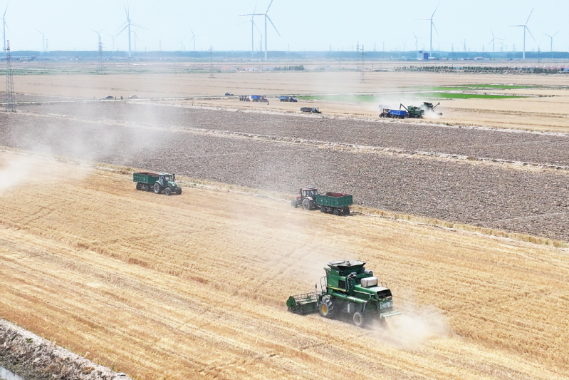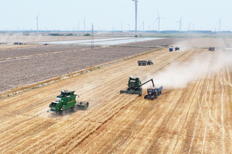 2025年5月29日,鹽城射陽縣江蘇農(nóng)墾臨海農(nóng)場(chǎng)順泰生產(chǎn)區(qū)麥浪涌動(dòng),大型聯(lián)合收割機(jī)轟鳴作業(yè),率先拉開當(dāng)?shù)叵氖招←溞蚰弧=陙?,農(nóng)場(chǎng)黨委以墾地合作推動(dòng)發(fā)展,通過技術(shù)賦能與鹽堿地改良,昔日鹽堿地蛻變?yōu)椤皣嵓Z田”,為鄉(xiāng)村振興打造國有農(nóng)業(yè)新樣板。