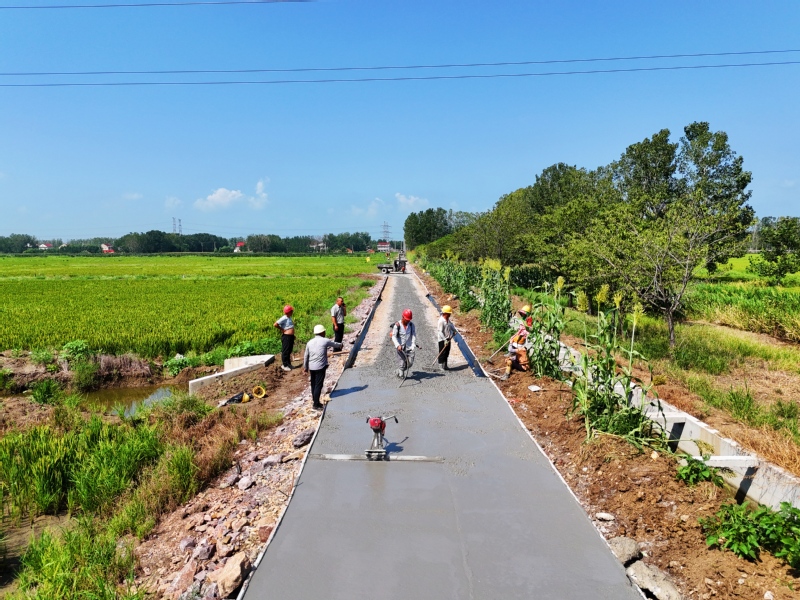9月9日,江蘇省連云港市海州區(qū)的江蘇農墾崗埠農場高標準農田建設現場,施工單位搶抓晴好天氣,加緊推進高標準農田配套水泥路建設,切實推動農田道路提檔升級,促進農業(yè)發(fā)展。作者:徐衛(wèi) 攝