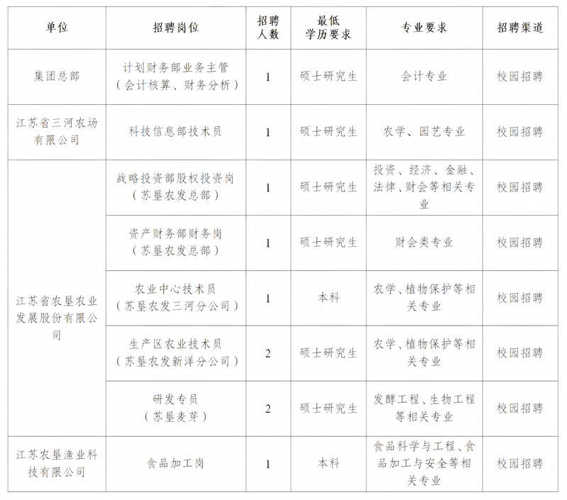 江蘇農(nóng)墾2025年秋季集中招聘公告(一)