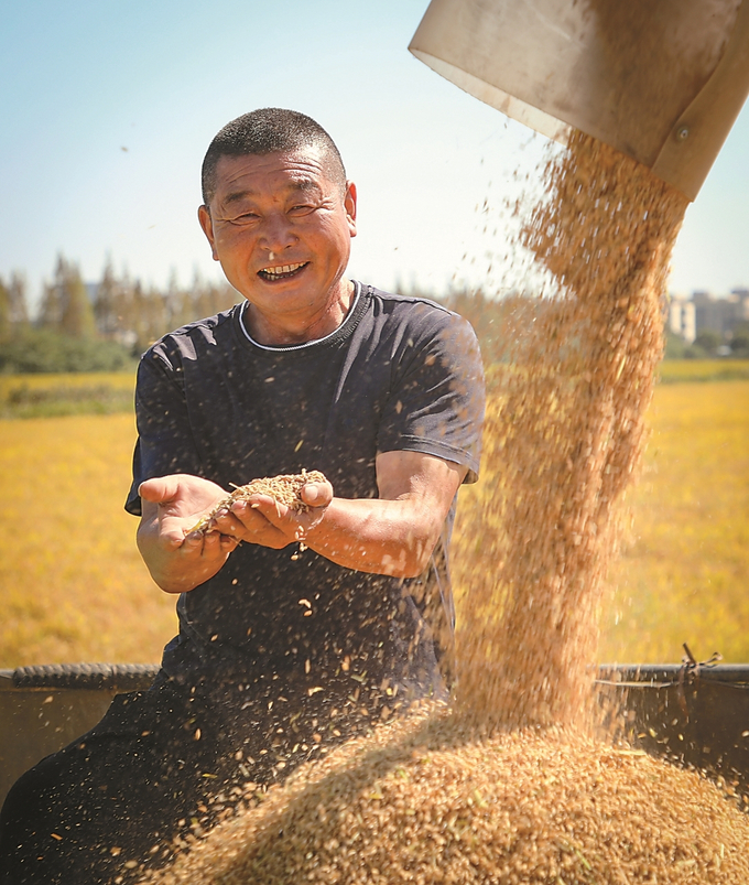 10月10日,南通市海門區(qū),江蘇農墾江心沙農場500余畝“低GI”功能性水稻喜迎豐收。