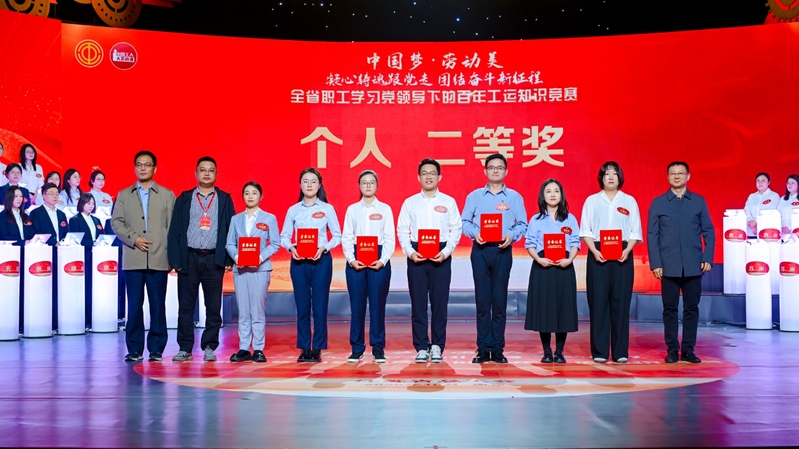 10月24日,由江蘇省總工會(huì)舉辦的“中國夢·勞動(dòng)美——凝心鑄魂跟黨走,團(tuán)結(jié)奮斗新征程”全省職工學(xué)習(xí)黨領(lǐng)導(dǎo)下的百年工運(yùn)知識(shí)競賽活動(dòng)在江蘇省廣播電視總臺(tái)1號(hào)演播大廳舉行,來自全省各地市和產(chǎn)業(yè)工會(huì)的23支代表隊(duì)、69名精英選手參與比賽。上午的初賽中,集團(tuán)代表隊(duì)的欒薇、王淑玉、黃昊之3名隊(duì)員克服備賽人員分散、備賽時(shí)間短等困難,在初賽三輪比拼中越戰(zhàn)越勇,以團(tuán)體第五名的成績殺入下午總決賽,決賽中隊(duì)員們團(tuán)結(jié)拼搏、穩(wěn)定發(fā)揮,最終獲得1名個(gè)人二等獎(jiǎng)、2名個(gè)人三等獎(jiǎng)和團(tuán)體銅獎(jiǎng)的好成績。