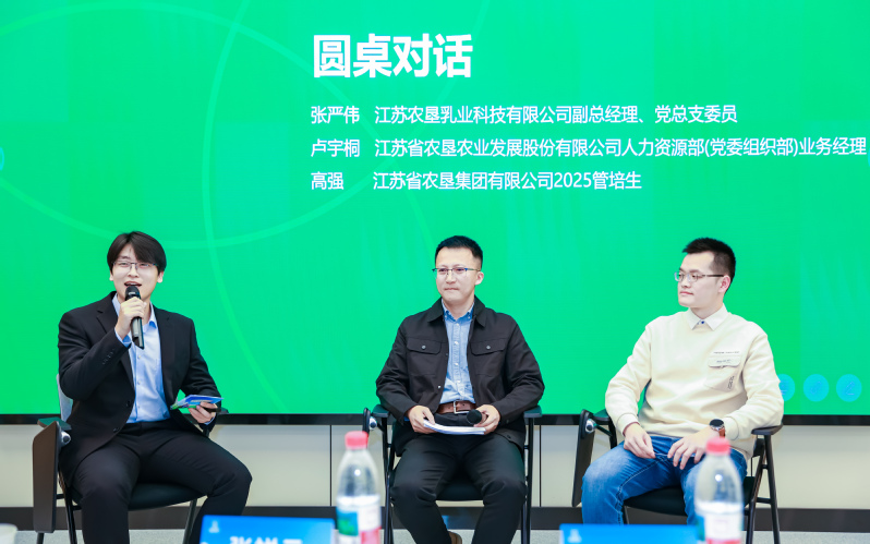 在“從校園人到農(nóng)墾人”成長分享環(huán)節(jié),南京農(nóng)業(yè)大學(xué)校友代表蘇墾乳業(yè)副總經(jīng)理張嚴(yán)偉、蘇墾農(nóng)發(fā)人力資源部業(yè)務(wù)經(jīng)理盧宇桐、集團(tuán)公司2025屆管培生高強(qiáng)分別講述了他們在江蘇農(nóng)墾的職業(yè)軌跡與心路歷程。張嚴(yán)偉更結(jié)合自己擔(dān)任面試官的經(jīng)驗(yàn),向?qū)W弟學(xué)妹送出“自信、真誠、專業(yè)”六字面試秘籍,并鼓勵(lì)大家堅(jiān)守農(nóng)業(yè)人的理想與初心。