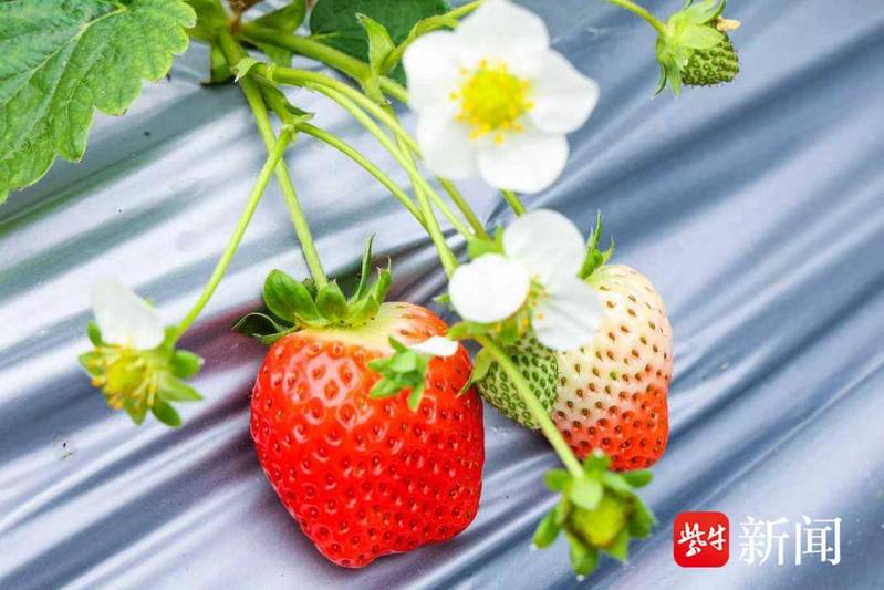 據(jù)悉,今年種植的品種有果中“帝王”——“隋珠”和江蘇本土驕子——“鹽莓1號”?!八逯椤辈葺赜小安葺弁酢钡拿雷u,其果實呈標準的長圓錐形,色澤亮麗,口感出眾。最大的特點是極高的甜度和濃郁的蜂蜜香味,入口即化,汁水充盈,幾乎不帶酸味,為消費者帶來了極致的味蕾享受。“鹽莓1號”則是經(jīng)過精心選育的優(yōu)良品種,特別適應本地的氣候和土壤條件,其果實硬度高,非常便于運輸和儲存,解決了草莓“嬌氣”易損的痛點,深受消費者喜愛。