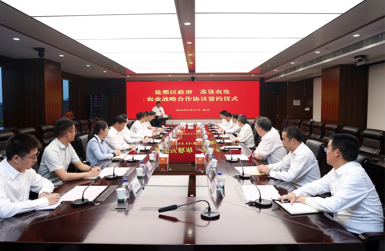 9月27日下午,蘇墾農(nóng)發(fā)與鹽都區(qū)政府簽訂農(nóng)業(yè)戰(zhàn)略合作協(xié)議。集團(tuán)黨委書(shū)記、董事長(zhǎng)吳本輝出席簽約儀式,集團(tuán)公司總經(jīng)濟(jì)師、蘇墾農(nóng)發(fā)黨委書(shū)記、董事長(zhǎng)朱亞?wèn)|主持,集團(tuán)黨委委員、蘇墾農(nóng)發(fā)總裁丁濤,鹽都區(qū)委副書(shū)記、代區(qū)長(zhǎng)臧沖出席并致辭。丁濤在致辭中表示,江蘇農(nóng)墾與鹽城歷史淵源深厚、產(chǎn)業(yè)高度契合、資源優(yōu)勢(shì)互補(bǔ),雙方有著良好的合作基礎(chǔ)。此次雙方簽署戰(zhàn)略合作協(xié)議,是貫徹落實(shí)鹽城市與江蘇農(nóng)墾戰(zhàn)略合作的具體行動(dòng),雙方將秉承真誠(chéng)合作、互利共贏的理念,充分發(fā)揮各自?xún)?yōu)勢(shì),圍繞社會(huì)化全農(nóng)服務(wù)、優(yōu)質(zhì)農(nóng)產(chǎn)品供應(yīng)、秸稈綜合利用等方面開(kāi)展全方位合作。期待雙方以發(fā)展現(xiàn)代農(nóng)業(yè)為核心,加強(qiáng)政策協(xié)同、推進(jìn)資源整合、深化產(chǎn)業(yè)合作,共同打造墾地合作的“鹽城樣板”,為推動(dòng)高質(zhì)量發(fā)展和農(nóng)業(yè)現(xiàn)代化走在前作出新的更大貢獻(xiàn)。臧沖向江蘇農(nóng)墾長(zhǎng)期以來(lái)對(duì)鹽都經(jīng)濟(jì)社會(huì)發(fā)展的關(guān)心支持表示感謝,簡(jiǎn)要介紹了鹽都區(qū)“三農(nóng)”工作情況。他指出,近年來(lái),鹽都區(qū)聚焦農(nóng)業(yè)高質(zhì)高效、鄉(xiāng)村宜居宜業(yè)、農(nóng)民富裕富足,大力推進(jìn)國(guó)家鄉(xiāng)村振興示范縣建設(shè)。蘇墾農(nóng)發(fā)是全省規(guī)模最大、現(xiàn)代化水平最高的農(nóng)業(yè)類(lèi)公司和商品糧生產(chǎn)基地,希望雙方以本次協(xié)議簽訂為開(kāi)端,推動(dòng)雙方在產(chǎn)業(yè)項(xiàng)目、平臺(tái)建設(shè)、人才交