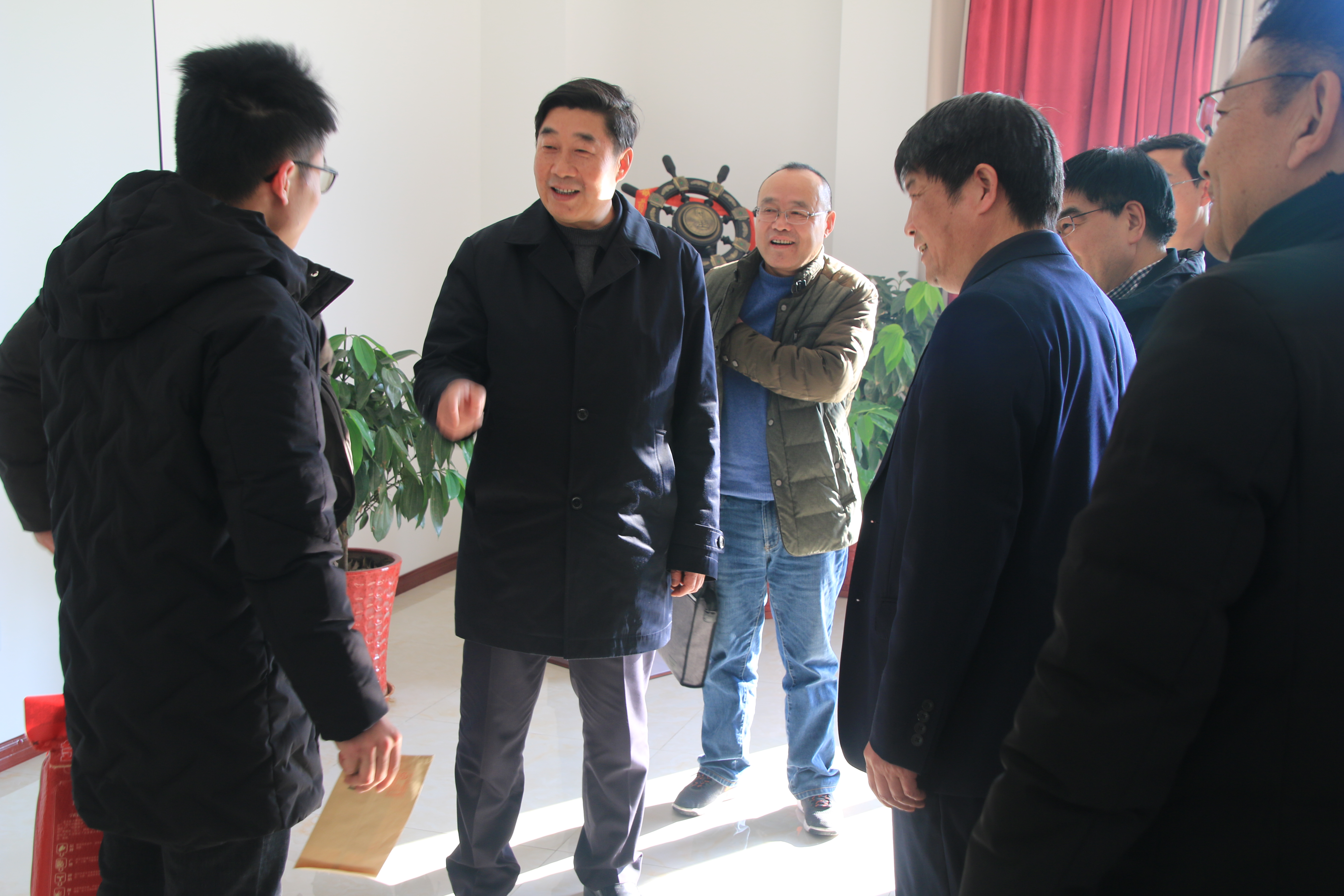 1月27日下午,集團公司黨委副書記姚準明一行到濱淮開展送溫暖活動,濱淮場領(lǐng)導(dǎo)李德利、傅龍光、李文忠、馬傳武、鄧權(quán)才、劉雄飛等陪同并匯報工作?! ∫拭饕恍惺紫葋淼酵诵輬鲱I(lǐng)導(dǎo)袁家鰲家中,姚準明見到老