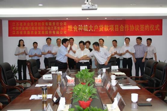 6月21日下午,蘇墾農(nóng)發(fā)、省農(nóng)行、省農(nóng)擔(dān)公司在寧舉行全省糧食種植業(yè)大戶(hù)貸款項(xiàng)目合作簽約儀式。集團(tuán)公司總經(jīng)理、蘇墾農(nóng)發(fā)董事長(zhǎng)胡兆輝,省農(nóng)行黨委副書(shū)記、副行長(zhǎng)周吉,省農(nóng)擔(dān)公司副總經(jīng)理朱旭東出席并講話(huà),