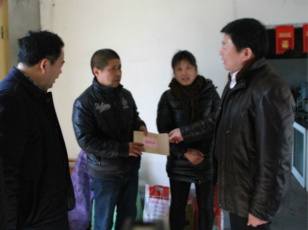 在春節(jié)即將到來之際,2月6日,集團(tuán)公司黨委委員、總會計師劉克英在資產(chǎn)經(jīng)營部、計劃財務(wù)部負(fù)責(zé)同志的陪同下,到臨海農(nóng)場走訪慰問職工,農(nóng)場黨委成員賀在銳、朱明亮、謝祥陪同。  在一分場因病致困職工石海成