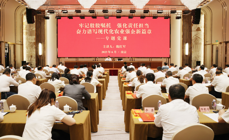 根據集團公司主題教育工作安排,6月29日下午,集團公司黨委書記、董事長魏紅軍以“牢記殷殷囑托 強化責任擔當 奮力譜寫現代化農業(yè)強企新篇章”為題講專題黨課。省委第十五巡回指導組組長榮迎春、成員張珍義到會指導。黨委副書記、總經理胡兆輝主持。魏紅軍結合學習體會和工作實際,用歷史的眼光循跡黨的發(fā)展歷程和江蘇農墾的使命任務,用發(fā)展的眼光定位江蘇農墾牢記“國之大者”、推進現代化農業(yè)強企的努力方向,用時代的眼光闡釋新時代農墾人的責任與擔當。魏紅軍指出,要堅持以學鑄魂,在學思想中夯實信仰之基。帶著囑托學、帶著感情學、帶著責任學,在全面系統(tǒng)深入的理論學習中不斷增進對黨的創(chuàng)新理論的政治認同、思想認同、理論認同、情感認同。鑄牢對黨忠誠,牢記第一身份是共產黨員,第一職責是為黨工作,做到在黨言黨、在黨憂黨、在黨為黨,態(tài)度鮮明、行動堅決。站穩(wěn)人民立場,突出群眾導向,解職工之盼、解改革之難、解發(fā)展之需,以實際行動“端穩(wěn)”糧食飯碗、“托底”糧食安全。魏紅軍指出,要堅持以學增智,在強黨性中提升履職能力。不斷從習近平新時代中國特色社會主義思想中汲取奮發(fā)進取的智慧和力量,掌握其中蘊含的思想方法、工作方法。錘煉過硬政治能力,