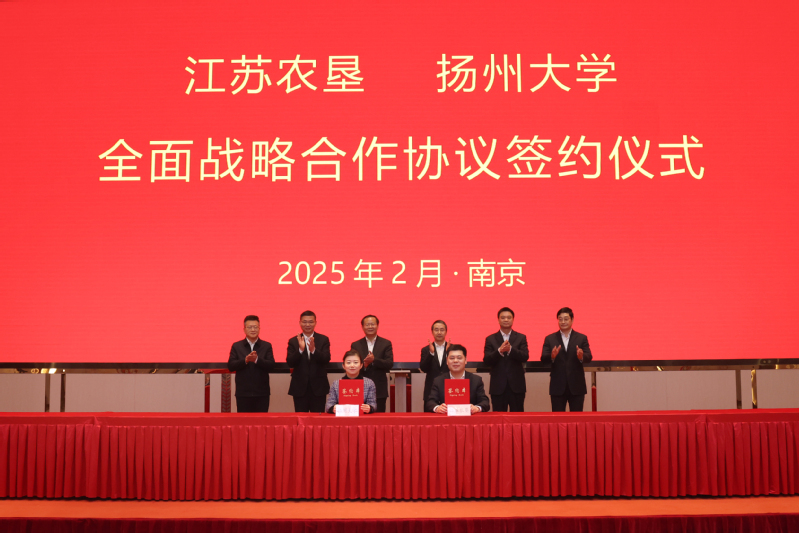 2月25日下午,省農(nóng)墾集團(tuán)與揚(yáng)州大學(xué)全面戰(zhàn)略合作協(xié)議簽約儀式在南京舉行。集團(tuán)黨委書記、董事長吳本輝致辭,揚(yáng)州大學(xué)黨委書記丁建寧出席并講話。集團(tuán)黨委副書記、總經(jīng)理姜建友,黨委副書記朱浩出席簽約儀式,黨委委員、副總經(jīng)理王立新主持簽約儀式。揚(yáng)州大學(xué)黨委副書記、校長劉巧泉,黨委常委、副校長趙文明,黨委常委、副校長蔡穎蔚出席簽約儀式。吳本輝對丁建寧一行的到來表示熱烈歡迎,他表示,揚(yáng)州大學(xué)以農(nóng)學(xué)為傳統(tǒng)特色,在江蘇現(xiàn)代農(nóng)業(yè)科技創(chuàng)新、科技服務(wù)、人才引培、對外合作等方面發(fā)揮重要作用,在時(shí)代浪潮中勇立潮頭,被譽(yù)為“高校改革的一面旗幟”。近年來,雙方在作物育種與栽培、農(nóng)業(yè)水利與農(nóng)機(jī)裝備、動(dòng)物遺傳育種與繁殖、動(dòng)物疫病防控、園藝與植物保護(hù)、農(nóng)產(chǎn)品安全與環(huán)境等領(lǐng)域開展緊密合作,共同實(shí)施重點(diǎn)農(nóng)業(yè)科研項(xiàng)目,深度開展人才交流,成果豐碩,充分彰顯了產(chǎn)學(xué)研合作的深厚根基和巨大潛力。江蘇農(nóng)墾將以此次全面戰(zhàn)略合作為契機(jī),共同構(gòu)建科技研發(fā)、人才培養(yǎng)、示范應(yīng)用“三位一體”的開放式平臺。深化科技創(chuàng)新合作,共建高水平技術(shù)研發(fā)與成果轉(zhuǎn)化基地,針對農(nóng)業(yè)領(lǐng)域的關(guān)鍵核心技術(shù),開展聯(lián)合攻關(guān)。強(qiáng)化人才培養(yǎng)合作,共建人才實(shí)習(xí)基地,推進(jìn)柔性人才互聘機(jī)