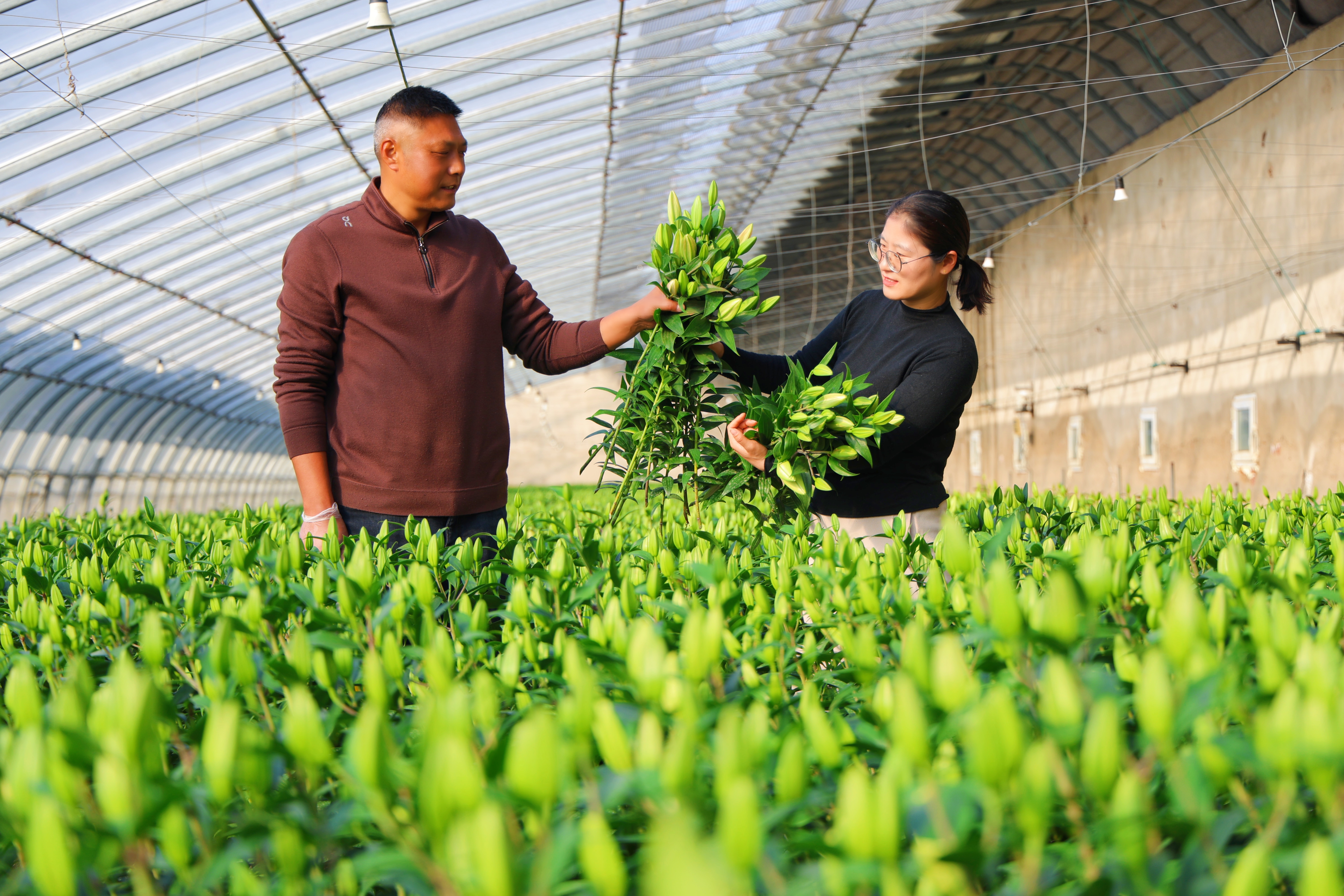 初冬時(shí)節(jié),走進(jìn)崗埠農(nóng)場(chǎng)高效農(nóng)業(yè)示范園26號(hào)大棚,一派繁忙而喜悅的景象映入眼簾,一株株百合花挺拔站立,不少已經(jīng)露出了粉色的花苞,顯得生機(jī)勃勃?!耙⒁鈪^(qū)分百合花苞數(shù)量,包裝時(shí)候要盡量保持花苞平齊。”11月24日上午,園區(qū)副主任魏建東正帶領(lǐng)著工作人員,認(rèn)真地采收、分揀、包裝著首批成熟的百合花。此次采收的百合花品種名為“索蚌”,是園區(qū)于今年9月份精心栽植的。與傳統(tǒng)種植方式不同,26號(hào)大棚采用了“一球雙芽”的新種植技術(shù),即一個(gè)種球培育出兩個(gè)芽苗,再進(jìn)行種植。這一技術(shù)的應(yīng)用,使得26號(hào)大棚僅種植了6000個(gè)種球,就達(dá)到了預(yù)期的種植效果,相比常規(guī)種植方式,種球用量減少了一半,節(jié)省了不少成本。“一球雙芽的種植方式,不僅提高了土地利用率,還增強(qiáng)了植株的抗逆性,使得百合花的品質(zhì)更加優(yōu)良。”魏建東說道。從目前的種植情況來看,“索蚌”百合花生長(zhǎng)狀況良好,花苞飽滿,已經(jīng)陸續(xù)進(jìn)入成熟期。為了確保百合花的品質(zhì)和市場(chǎng)供應(yīng)的穩(wěn)定性,園區(qū)在管護(hù)方面下足了功夫。從種植到采收,每一個(gè)環(huán)節(jié)都嚴(yán)格把關(guān),確保每一朵百合花都能以最佳的狀態(tài)呈現(xiàn)在消費(fèi)者面前。在園區(qū)的25號(hào)大棚,來自荷蘭簡(jiǎn)懷特公司的百合種植專家拔起了一株百合花,仔細(xì)查