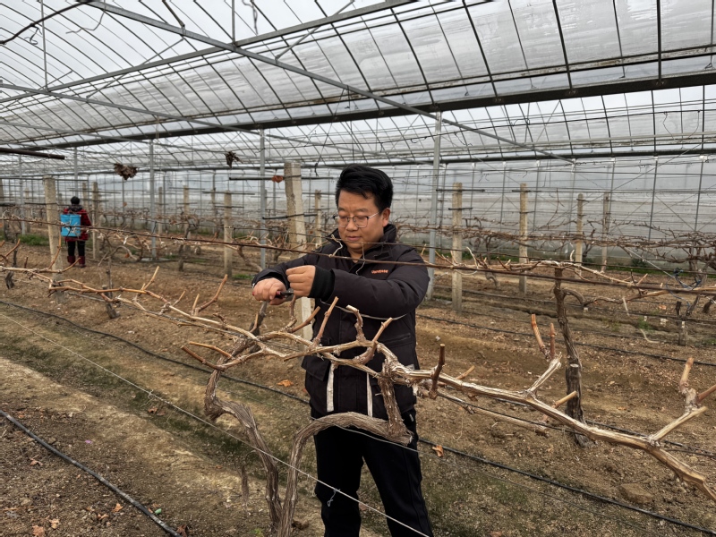 大年初五,當(dāng)大多數(shù)人仍沉浸在節(jié)日的喜悅中時(shí),海安農(nóng)場高效葡萄園已呈現(xiàn)出一派繁忙有序的景象。工人們放棄休息,堅(jiān)守崗位,認(rèn)真進(jìn)行著整枝清園工作。葡萄園負(fù)責(zé)人安強(qiáng)一邊熟練地修剪枝條,一邊介紹道,“葡萄樹冬剪至關(guān)重要,直接關(guān)系葡萄的生長和產(chǎn)量,趁著春節(jié)期間溫度低,我們抓緊時(shí)間對(duì)枯病枝、過密枝再進(jìn)行精準(zhǔn)復(fù)剪,這樣有利于通風(fēng)透光,同時(shí)調(diào)節(jié)樹體養(yǎng)分,為夏季豐收打好基礎(chǔ)?!背硕簦鍒@工作也有條不紊的進(jìn)行著,工人們正穿梭在果樹中,噴灑藥劑進(jìn)行全面清園殺菌,全力做好病蟲害防治工作。