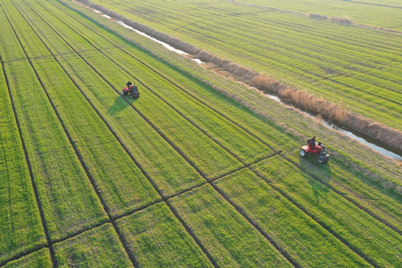 又到羊肚菌種植時(shí)節(jié),白馬湖農(nóng)場搶抓黃金時(shí)段,換新棚、擴(kuò)規(guī)模、加輪作,開啟羊肚菌種植新模式。在羊肚菌種植基地,工人們旋耕土地、開溝覆土,揉散、播撒菌種,放置營養(yǎng)包,覆蓋地膜……現(xiàn)場分工協(xié)作,配合默契,大棚內(nèi)一派繁忙景象?!鞍遵R湖羊肚菌種植基地占地5畝,共設(shè)有13個(gè)大棚,專門用于羊肚菌的生產(chǎn)。預(yù)計(jì)將產(chǎn)出新鮮羊肚菌2500斤,總產(chǎn)值7.5萬元左右。現(xiàn)在羊肚菌生長的大棚是我們根據(jù)特色產(chǎn)業(yè)需要全新設(shè)計(jì)的,運(yùn)用科技加持,為來年羊肚菌豐收打下堅(jiān)實(shí)基礎(chǔ)?!绷止苷矩?fù)責(zé)人呂治順說。作為“菌中之王”,羊肚菌市場前景非常廣闊,在去年試種成功的基礎(chǔ)上,今年白馬湖提前考察市場銷售情況、謀劃羊肚菌種植,首次采用了“菌+”特色種植產(chǎn)業(yè)發(fā)展模式,每年12月份種植羊肚菌,來年3月到5月,可收獲多茬羊肚菌。羊肚菌采收結(jié)束后再適時(shí)種植其他作物,既均衡利用土壤養(yǎng)分,又有效提高土地利用率,實(shí)現(xiàn)“一棚多收”?!暗貕派弦延忻苊苈槁榈陌咨z,來年開春,它們就會(huì)長成碩大飽滿的羊肚菌?,F(xiàn)在工人們正在揉勻和放好營養(yǎng)包,以保障菌絲均勻吸收到營養(yǎng)?!绷止苷炯夹g(shù)人員韓亞奇介紹道。今年種植的突出亮點(diǎn)是以科技賦能產(chǎn)業(yè)創(chuàng)新。大棚內(nèi)新安裝了自動(dòng)化灌溉系