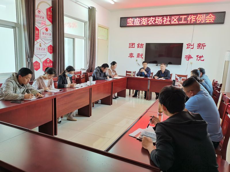 5月17日,寶應(yīng)湖農(nóng)場(chǎng)社區(qū)管理委員會(huì)召開(kāi)周例會(huì),社區(qū)全體員工參會(huì)。會(huì)議對(duì)當(dāng)前重點(diǎn)、難點(diǎn)工作完成情況、存在困難、工作措施等進(jìn)行了梳理通報(bào),要求所有與會(huì)人員全身心投入、全方位跟進(jìn)、全力量攻堅(jiān),促進(jìn)社區(qū)工作有目標(biāo)、有計(jì)劃、有落實(shí)、有跟蹤、有考核,凝心聚力共建平安、健康、和諧、幸福社區(qū)。