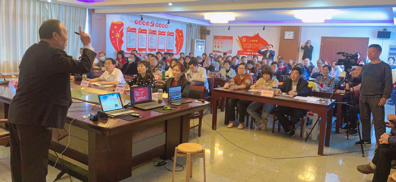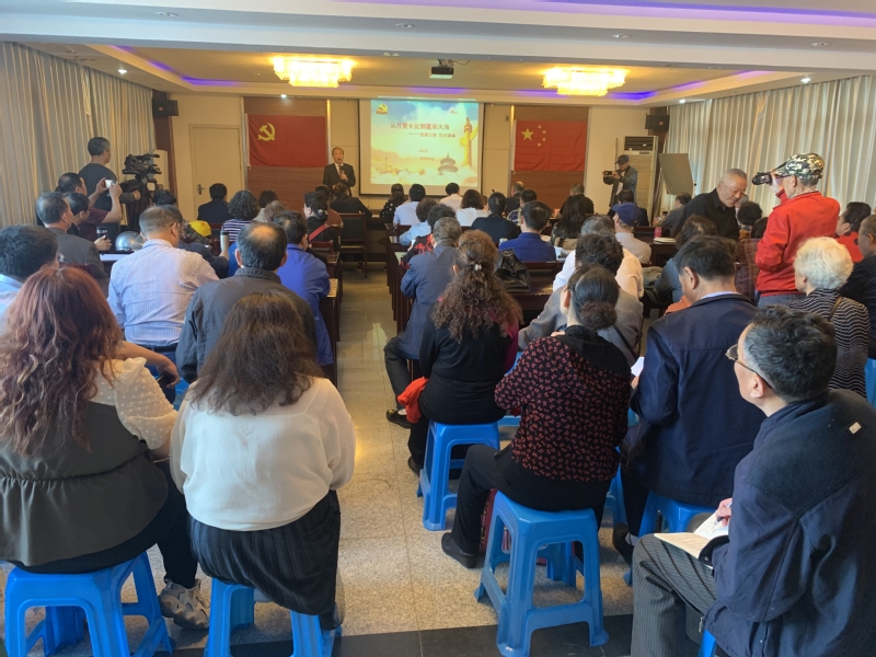 伴隨著原江蘇生產(chǎn)建設(shè)兵團三師十七宣傳隊隊員自創(chuàng)的原唱歌曲《放聲歌唱共產(chǎn)黨》優(yōu)美、動聽的歌聲,大會拉開了序幕,全場座無虛席,空隙處還增放了多張座凳,濟濟一堂,聆聽昔日的兵團戰(zhàn)士,如今河海大學商學院原黨委書記,上海交大客座教授顧宏言的黨史講課,《從萬里長征到星辰大海——黨旗引領(lǐng)黨史鑄魂》。