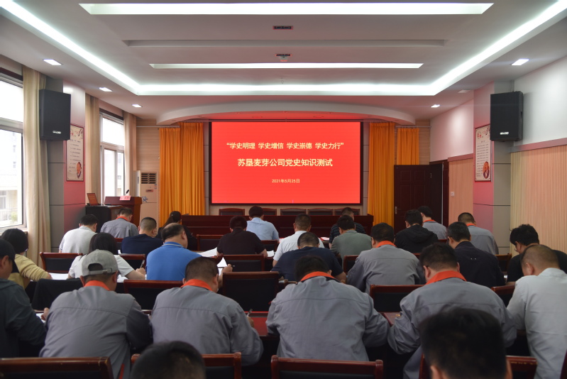 為認(rèn)真學(xué)習(xí)貫徹習(xí)近平總書記在黨史學(xué)習(xí)教育動(dòng)員大會(huì)上的講話精神,持續(xù)深化愛國(guó)、愛黨教育,引導(dǎo)全體黨員進(jìn)一步堅(jiān)定理想信念,傳承紅色基因,激發(fā)干事熱情,5月25日下午,蘇墾麥芽公司組織公司全體黨員進(jìn)行黨史學(xué)習(xí)教育專題測(cè)試。