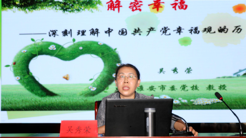 淮安市委黨校副教育長、教授吳秀榮應(yīng)邀到場為廣大黨員職工作《解密幸福--深刻理解中國共產(chǎn)黨幸福觀的歷史演進(jìn)》專題宣講。“我們黨的百年歷史,就是一部踐行黨的初心使命的歷史,就是一部黨與人民心連心、同呼吸、共命運(yùn)的歷史?!毙v以習(xí)近平總書記講話為開篇,依次從幸福的本質(zhì)、中國共產(chǎn)黨幸福觀歷史演進(jìn)、中國共產(chǎn)黨的成功原因剖析三個(gè)方面逐層推進(jìn),著重從物質(zhì)生活和精神生活相統(tǒng)一、享受相統(tǒng)一、個(gè)人幸福和集體幸福的統(tǒng)一分析了中國共產(chǎn)黨幸福觀歷史演進(jìn),剖析了中國共產(chǎn)黨成功的原因,宣講還從四個(gè)方面詳細(xì)闡述了習(xí)近平的幸福觀:傳承和發(fā)展了馬克思主義幸福觀、創(chuàng)新和超越了中國傳統(tǒng)幸福觀、激蕩了個(gè)人層面的奮斗精神、彰顯了領(lǐng)導(dǎo)層面的擔(dān)當(dāng)氣派。宣講最后以“幸福,不僅僅是名詞;幸福,更是動(dòng)詞﹍﹍”為結(jié)尾,給人啟迪,發(fā)人深思。