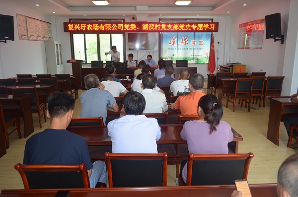金湖縣銀涂鎮(zhèn)湖濱村是復興圩農(nóng)場黨建工作企地共建單位,自黨史學習教育開展以來,雙方進一步加強學習交流,先后赴浙江安吉、嘉興、常熟開展了“學黨史踐初心 開新局譜新篇”紅色實境教育。6月27日下午,在湖濱村黨支部活動室開展了企地共享學黨史活動,邀請了銀涂鎮(zhèn)人武部部長黃冬作了專題黨課。黃部長從完成新民主主義革命,建立中華人民共和國開始說起,深刻闡述了黨堅定地捍衛(wèi)國家民族利益,真誠地解決人民、特別是農(nóng)民的民生問題,努力實現(xiàn)人民的民主權(quán)利,黨、政府和軍隊的高度廉潔;從完成社會主義革命,確立社會主義基本制度說起,闡述了中國共產(chǎn)黨在政治上、經(jīng)濟上、外交上、國防上取得的偉大成就;從進行改革開放新的偉大革命,極大解放和發(fā)展社會生產(chǎn)力說起,闡述了經(jīng)濟快速發(fā)展、民主法治建設(shè)取得的進步、文化影響力顯著擴大,人民生活水平大幅度提高、國家統(tǒng)一大業(yè)穩(wěn)步推進、國防實力得到很大提升說起,總結(jié)了黨為中華民族作出的偉大貢獻。