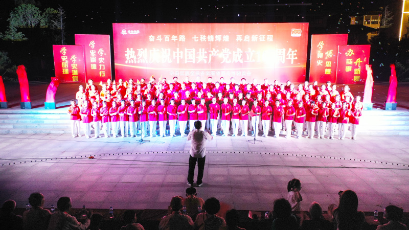 晚會(huì)由150人組成的鑼鼓隊(duì)和健走隊(duì)巡游拉開(kāi)帷幕,隊(duì)員們身著統(tǒng)一服裝,手舉黨旗、國(guó)旗從云荷廣場(chǎng)出發(fā)至東山路再到普山路。現(xiàn)場(chǎng)近百人的威風(fēng)鑼鼓氣勢(shì)磅礴,社區(qū)領(lǐng)導(dǎo)上臺(tái)致辭后,演出活動(dòng)在歡快的非洲鼓《中國(guó)范》表演中正式開(kāi)始。舞蹈《一杯美酒》《亞麗古娜》抒發(fā)了人們對(duì)新生活的追求與渴望;詩(shī)朗誦《我驕傲我是中國(guó)人》《少年中國(guó)說(shuō)》《我愛(ài)你,中國(guó)》表達(dá)做為一名中國(guó)人驕傲和自豪,已經(jīng)深深植根于每個(gè)中國(guó)人的心中,表達(dá)了對(duì)革命前輩的崇敬和對(duì)祖國(guó)的熱愛(ài);男聲獨(dú)唱《我和我的祖國(guó)》用無(wú)限的深情表達(dá)了同祖國(guó)共命運(yùn)、心連心,祖國(guó)是我們億萬(wàn)炎黃子孫生命的寄托之情;演講《百年征程史不忘初心路》則講述的是本場(chǎng)老革命、老黨員闞立仁同志在朝鮮戰(zhàn)場(chǎng)上的真實(shí)故事,感人至深,表達(dá)了對(duì)革命前輩的崇敬,讓現(xiàn)場(chǎng)黨員群眾以“沉浸式”感受此次文藝演出帶來(lái)的精神洗禮??彀灞硌莩睹利愒婆_(tái)》、建黨百年表演唱《少年》等一系列節(jié)目輪番上演,精彩紛呈;社區(qū)工作人員用恢弘磅礴的氣勢(shì)合唱《保衛(wèi)黃河》,飽含深情,感受我黨從槍林彈雨和日寇的封鎖線走來(lái),我們伴著歌聲奮勇殺敵的場(chǎng)景歷歷在目,表達(dá)了對(duì)中國(guó)共產(chǎn)黨成立100周年的深深祝福。演出在居民百人激情大合唱《大海航行靠舵手》《沒(méi)有共產(chǎn)黨就沒(méi)有新中國(guó)》的歌聲中推向最高潮,表達(dá)對(duì)祖國(guó)的熱愛(ài)與祝福。