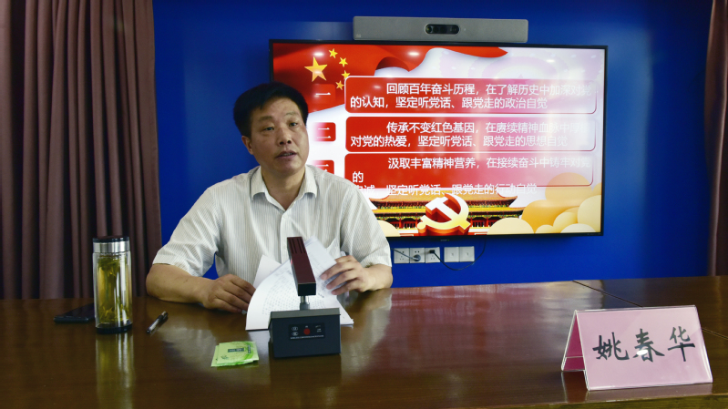 黨課中,姚春華以《學(xué)習(xí)百年黨史汲取精神力量做推動(dòng)農(nóng)場(chǎng)公司高質(zhì)量發(fā)展的奮斗者》為題,以一百年來中國共產(chǎn)黨團(tuán)結(jié)帶領(lǐng)中國人民在新民主主義革命時(shí)期、社會(huì)主義革命和建設(shè)時(shí)期、改革開放和社會(huì)主義現(xiàn)代化建設(shè)時(shí)期和中國特色社會(huì)主義新時(shí)代這四個(gè)歷史階段的奮斗歷程為主線,圍繞學(xué)習(xí)貫徹習(xí)近平總書記在黨史學(xué)習(xí)教育動(dòng)員大會(huì)上的講話和在慶祝中國共產(chǎn)黨成立100周年大會(huì)上的重要講話精神,結(jié)合自己黨史學(xué)習(xí)教育以來的收獲體會(huì),運(yùn)用大量典型事例和黨史故事,從三個(gè)方面展開講解和闡述:第一是回顧百年奮斗歷程,在了解歷史中加深對(duì)黨的認(rèn)知,堅(jiān)定聽黨話、跟黨走的政治自覺。指出,只有了解過去,才能正確認(rèn)識(shí)現(xiàn)在,只有正確認(rèn)識(shí)現(xiàn)在,才能科學(xué)把握未來。通過學(xué)習(xí)黨史,可以加深對(duì)歷史經(jīng)驗(yàn)的認(rèn)識(shí)、提高對(duì)歷史功能的認(rèn)識(shí)、提升用好歷史規(guī)律的自覺。第二是傳承不變紅色基因,在賡續(xù)精神血脈中厚植對(duì)黨的熱愛,堅(jiān)定聽黨話、跟黨走的思想自覺。重點(diǎn)要從偉大建黨精神這一中國共產(chǎn)黨戰(zhàn)無不勝、創(chuàng)造奇跡的致勝法寶和基因密碼中,找準(zhǔn)立黨興黨強(qiáng)黨的精神之“源”,從黨的百年歷史中感悟信仰的力量、感知人民的力量、感念愛國主義情懷、感想獨(dú)立自主的精神、感受自我革命的勇氣、感佩天下大同的情懷。第三是汲取豐富精神營養(yǎng),在接續(xù)奮斗中鑄牢對(duì)黨的忠誠,堅(jiān)定聽黨話、跟黨走的行動(dòng)自覺。著重要用黨的奮斗歷程和偉大成就鼓舞斗志、明確方向,用黨的光榮傳統(tǒng)和優(yōu)良作風(fēng)堅(jiān)定信念、凝聚力量,用黨的實(shí)踐創(chuàng)造和歷史經(jīng)驗(yàn)啟迪智慧、砥礪品格。具體要在對(duì)照黨的性質(zhì)宗旨中鑄牢堅(jiān)定信仰、矢志不渝的忠誠之魂,要在體悟黨的光榮傳統(tǒng)優(yōu)良作風(fēng)中修好認(rèn)真負(fù)責(zé)、精益求精的成事之道,要在學(xué)習(xí)黨的非凡歷程中凝聚堅(jiān)忍不拔、無私奉獻(xiàn)的奮進(jìn)之力,要在推動(dòng)農(nóng)場(chǎng)公司高質(zhì)量發(fā)展中履行接續(xù)奮斗、擔(dān)當(dāng)作為的拼搏之責(zé),要在汲取黨的歷史經(jīng)驗(yàn)和教訓(xùn)中涵養(yǎng)嚴(yán)于律己、崇德向善的干凈之氣。
