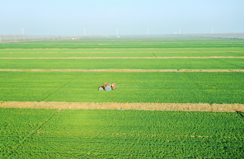 眼下正是油菜返青生產(chǎn)的關(guān)鍵時期,在新曹農(nóng)場匡東生產(chǎn)區(qū)千畝連片油菜田里,管理人員正駕駛著施肥農(nóng)機進行施肥作業(yè)。