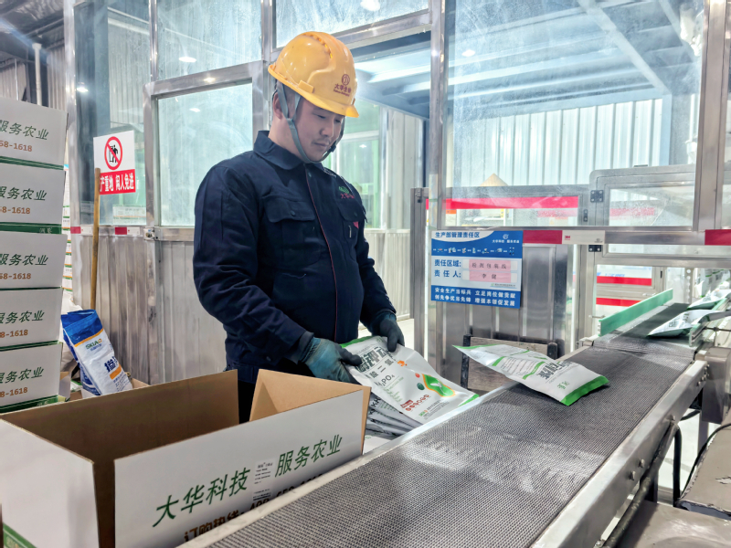 在3月農(nóng)資銷售旺季,蘇墾農(nóng)服大華生物生產(chǎn)車間里一派熱火朝天的景象。生產(chǎn)線上,工人們頭戴安全帽,身著工作服,熟練地操作著設(shè)備,從原材料的投放、混合攪拌,到成品肥料的包裝、搬運(yùn),各個環(huán)節(jié)緊密銜接。近階段,公司各生產(chǎn)線穩(wěn)定運(yùn)行,產(chǎn)品庫存充足,為沖刺一季度“開門紅”提供了有力支撐。
