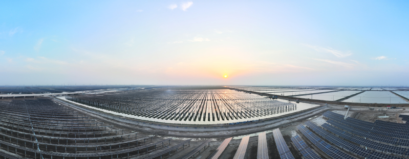 江蘇農(nóng)墾聚焦生態(tài)環(huán)保,著力發(fā)展綠色循環(huán)經(jīng)濟(jì),全面推動(dòng)產(chǎn)業(yè)綠色化轉(zhuǎn)型。圖為2024年5月興建的東辛漁光一體集中式光伏發(fā)電項(xiàng)目,目前已順利并網(wǎng)發(fā)電。