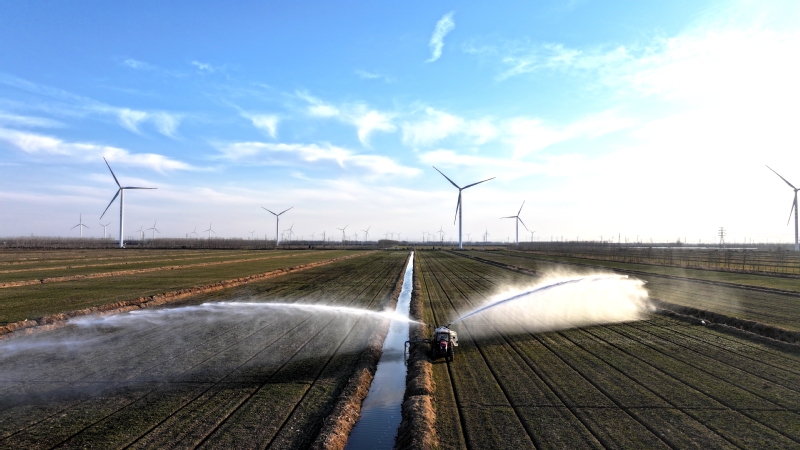 連日來(lái),為有效應(yīng)對(duì)近期氣候干旱少雨情況,黃海農(nóng)場(chǎng)充分調(diào)動(dòng)各種資源,調(diào)配充足灌溉設(shè)備和水源,確保每一塊小麥田都能得到及時(shí)有效的灌溉,讓小麥喝足新春“第一口水”。圖為蘇墾農(nóng)發(fā)黃海分公司使用自主研發(fā)的麥田噴灌機(jī)進(jìn)行噴灌作業(yè)。