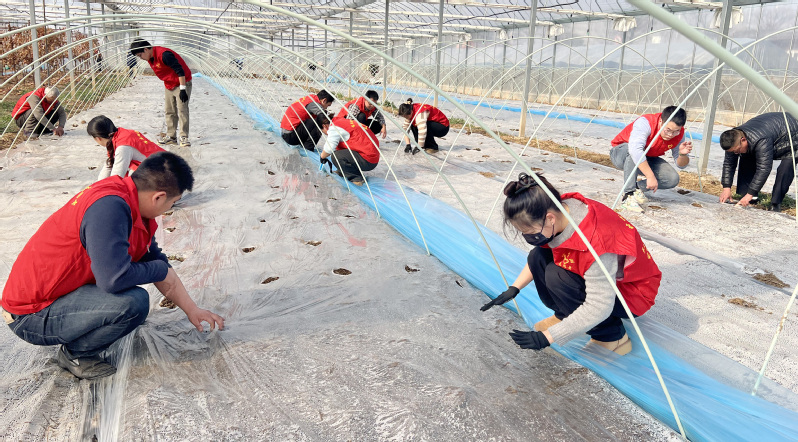 近日,寶應(yīng)湖農(nóng)場(chǎng)社區(qū)機(jī)關(guān)黨總支組織20余名黨員、積極分子深入農(nóng)場(chǎng)高效農(nóng)業(yè)示范園,開(kāi)展“旗幟領(lǐng)航志愿紅 攜手助力產(chǎn)業(yè)興”主題實(shí)踐活動(dòng),為新種植的13個(gè)大棚毛豆破膜出苗提供人工輔助。
