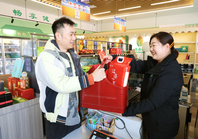 新春將至,年味漸濃。在東辛東米食品門店,琳瑯滿目的商品擺滿貨架,各式各樣的雞產(chǎn)品鋪滿冷藏柜,門外停靠的貨車排成長(zhǎng)龍,工作人員正在緊張備貨,職工居民攜家?guī)Э诓少I年貨,處處洋溢著喜慶祥和的節(jié)日氛圍。在冷柜展區(qū),年貨禮盒吸引了眾多顧客駐足,大家紛紛挑選心儀的產(chǎn)品,銷售人員向顧客一一介紹,并現(xiàn)場(chǎng)推薦奧爾良烤翅、金粉翅中、熏雞等熱銷組合搭配。張大姨對(duì)此次購(gòu)買的禮盒十分滿意,她開心地說(shuō):“外面包裝喜慶,里頭食品美味,不管是家庭聚會(huì),還是做客送禮,都很合適,身邊親戚朋友都來(lái)爭(zhēng)相購(gòu)買?!钡觊L(zhǎng)謝文文介紹,目前節(jié)日市場(chǎng)需求旺盛,速凍雞產(chǎn)品銷量激增,店內(nèi)工作人員齊上陣,加班加點(diǎn)全力補(bǔ)貨備貨。同時(shí),積極與廠家供應(yīng)商對(duì)接,增加熱銷產(chǎn)品供貨頻次,確保雞產(chǎn)品種類齊全、優(yōu)質(zhì)優(yōu)價(jià)。同步推出多款禮盒產(chǎn)品,滿足消費(fèi)者多樣化、個(gè)性化需求。截至目前,店內(nèi)已儲(chǔ)備貨品30余噸,禮盒4000余份,發(fā)往南京、淮安、鹽城、南通等地新年禮盒2000余份。