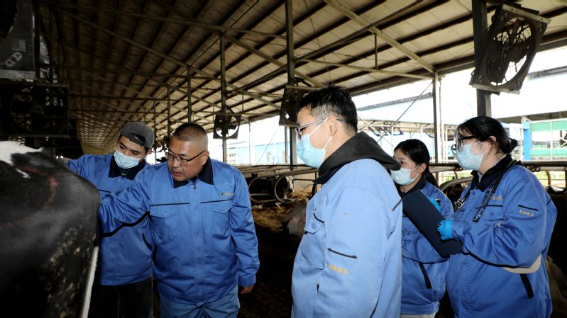 “從外部叩診聲音判斷,這頭牛的肺部已由清音轉(zhuǎn)為濁音,聽診器中也有明顯的氣泡炸裂聲,要馬上進行治療?!?1月19日下午,在東辛東旺奶牛公司生態(tài)養(yǎng)殖示范場,一場現(xiàn)場教學正在進行,獸醫(yī)主管周文波正帶領(lǐng)獸醫(yī)組人員對病癥牛只開展日常巡診。通過觸診、視診、嗅診、聽診、叩診等診斷方法,認真細致檢查牛只體況,周文波“手把手”傳授獸醫(yī)組人員如何快速準確診斷病因,做到對癥下藥?!?23180號奶牛奶液出現(xiàn)明顯絮狀物,使用頭孢噻呋乳注搭配美洛昔康皮下注射進行治療。213722號奶牛體溫升高,要做好提前干預(yù)。在日常巡舍中一定要多觀察多診斷,才能及時發(fā)現(xiàn)奶牛體征異樣?!敝芪牟ㄟ叢榭磁V粻顩r邊叮囑獸醫(yī)組人員。東旺奶牛公司生態(tài)養(yǎng)殖示范場存欄奶牛4800余頭,日常的奶牛管護、產(chǎn)后護理、轉(zhuǎn)群分群及病牛治療等工作任務(wù)十分繁重,獸醫(yī)組嚴格遵循“日巡查+周例會+月巡診”的工作機制,通過巡棚查看、巡診交流,全面了解掌握牛只的健康與成長狀況,做到有檢查、有治療、有回診,保障疫病防控和奶產(chǎn)品安全供給?!懊總€月,周主管都會定期帶我們進行巡診,現(xiàn)場診斷指導,我們的業(yè)務(wù)水平有了明顯提升,工作起來也更得心應(yīng)手了?!鲍F醫(yī)組工作人員楊華說。東