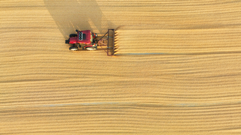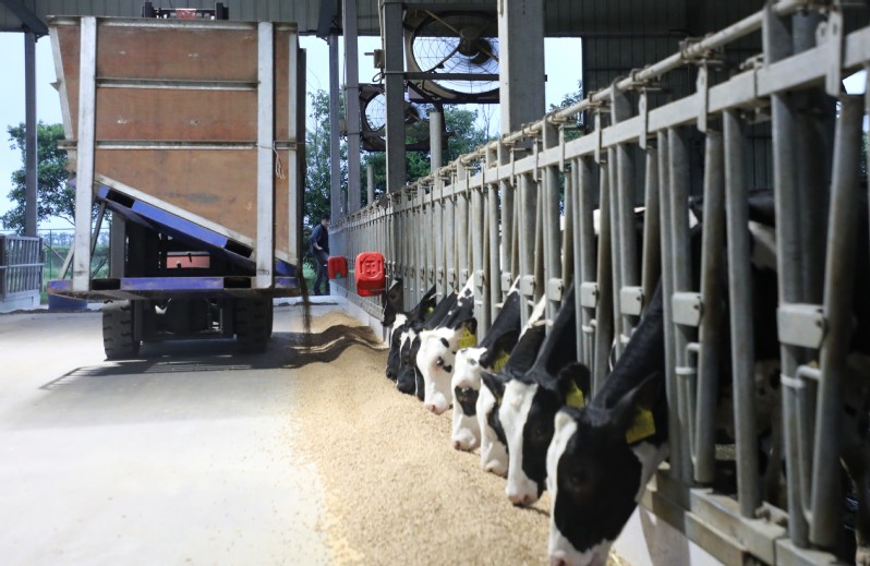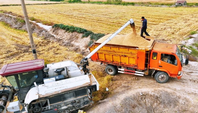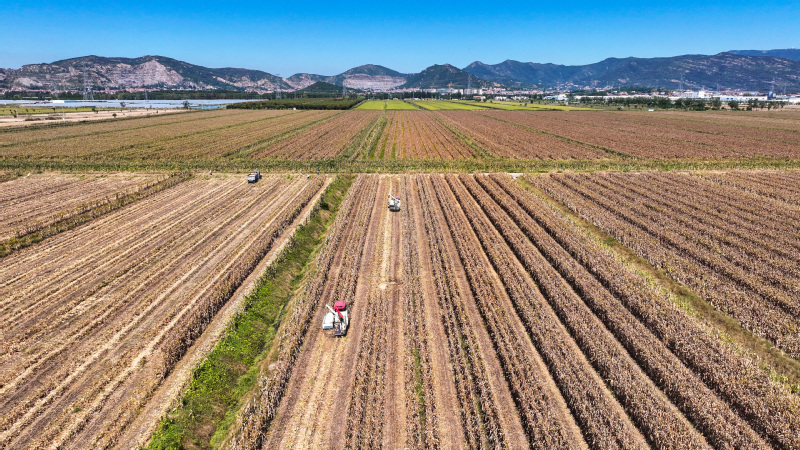 時下,正式秋收好時節(jié),在蘇墾農(nóng)發(fā)云臺分公司廣袤的田野上,豆莢搖曳如鈴,玉米金黃飽滿,伴隨著收割機(jī)的轟鳴聲,蘇墾農(nóng)發(fā)云臺分公司1.1萬畝玉米大豆復(fù)合種植“喜開鐮”,工作人員搶抓晴好天氣,及時收割、晾曬,開始了緊張而有序的收割工作。蘇墾農(nóng)發(fā)云臺分公司緊盯全年糧食生產(chǎn)目標(biāo)任務(wù),按照江蘇省農(nóng)墾集團(tuán)的“五統(tǒng)一”模式為標(biāo)準(zhǔn),通過“4+4”復(fù)合種植模式,充分發(fā)揮高位作物玉米的邊行優(yōu)勢,擴(kuò)大低位作物大豆受光空間,實現(xiàn)作物協(xié)同共生、一季雙收。為了抓好今年“三秋”工作,蘇墾農(nóng)發(fā)云臺分公司制定了各大隊組織分工、產(chǎn)量目標(biāo)、成本管控、生產(chǎn)進(jìn)度、作業(yè)質(zhì)量、田間苗情、病蟲草害控制、場頭管理與糧食入庫銷售、質(zhì)控平臺運行、農(nóng)業(yè)面源污染治理、藥肥雙減增效、安全生產(chǎn)等12項“三秋”考核內(nèi)容,并多次開展技術(shù)培訓(xùn),為抓好“三秋”工作提供組織保證、考核目標(biāo)和技術(shù)標(biāo)準(zhǔn)?!翱礃幼?,今年又是一個豐收年。”一大隊隊長王飛抓起一把玉米說?!伴_始作業(yè)前,我們對所有農(nóng)機(jī)具進(jìn)行了安全自查,確保收割機(jī)狀態(tài)良好,在玉米收割過程中我們嚴(yán)格按照玉米收獲作業(yè)質(zhì)量管理規(guī)程,真正實現(xiàn)玉米籽粒損失率要小于等于百分之二,籽粒破損率要小于等于百分之五的目標(biāo)任務(wù)?!?/div>