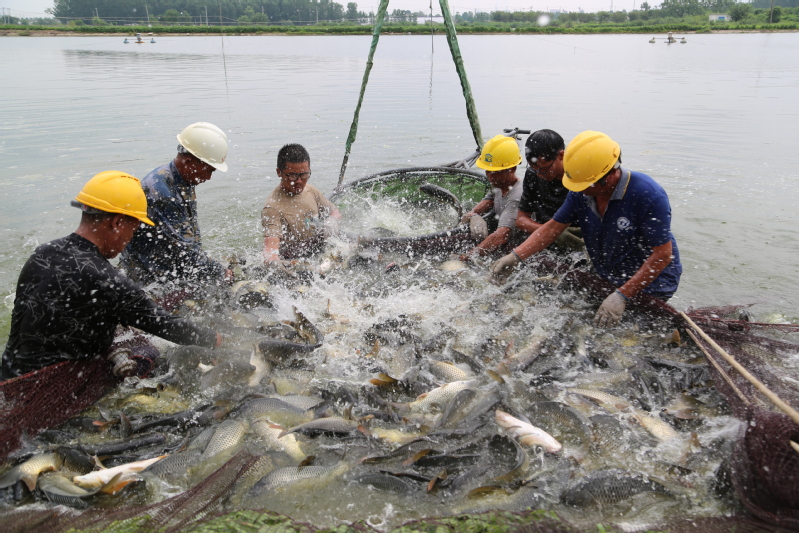 今年以來,崗埠農(nóng)場(chǎng)公司立足“淮河”牌品牌優(yōu)勢(shì),堅(jiān)持科學(xué)生態(tài)喂養(yǎng)鯉魚,采取輪捕輪放、訂單銷售,上半年至今,共計(jì)銷售“淮河”牌鯉魚25.53萬斤,銷售額超150萬元,水產(chǎn)品遠(yuǎn)銷云貴川、河北山東山西等地。圖為“淮河”牌鯉魚捕撈現(xiàn)場(chǎng)。
