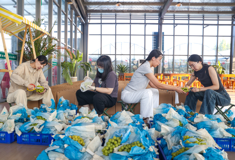佳節(jié)將至,云臺(tái)農(nóng)場(chǎng)云水灣濕地公園搶抓節(jié)日市場(chǎng)“消費(fèi)季”,各式農(nóng)產(chǎn)品變身“佳節(jié)大禮包”,吸引大批客戶前來訂貨,為節(jié)日市場(chǎng)注入新活力。走進(jìn)云水灣濕地公園,園區(qū)內(nèi)一派繁忙的工作景象,工作人員分工明確采摘組、打包組、配貨組……大家配合默契,加班加點(diǎn)備足貨品,全力保障農(nóng)產(chǎn)品市場(chǎng)供給?!皞鋺?zhàn)佳節(jié)市場(chǎng),我們的產(chǎn)品,從挑選、包裝到配送,每個(gè)環(huán)節(jié)我們都嚴(yán)格把控,確保每位客戶都能收到滿意的產(chǎn)品,今年我們準(zhǔn)備了葡萄、鮮梨、草雞蛋等農(nóng)產(chǎn)品禮盒,現(xiàn)已售出1500余份,實(shí)現(xiàn)收益約20萬元,訂單量還在持續(xù)攀升?!痹扑疄碀竦毓珗@常務(wù)副總經(jīng)理卜馳龍說。此外,為了拓寬銷路,園區(qū)還推出限時(shí)優(yōu)惠、團(tuán)購折扣等促銷活動(dòng),進(jìn)一步激發(fā)了消費(fèi)者的購買熱情。