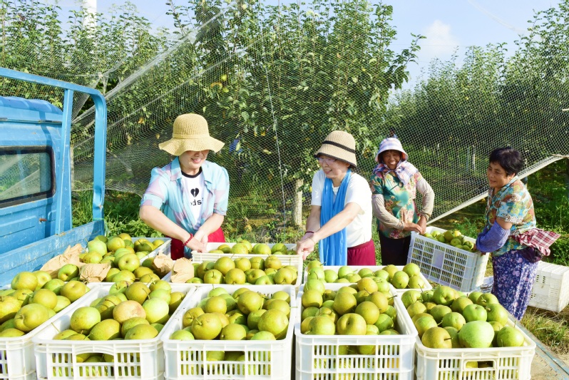9月4日,江心沙農(nóng)場(chǎng)“明星水果”秋月梨如期開園,果農(nóng)忙著采摘、轉(zhuǎn)運(yùn)、包裝,全力趕訂單供應(yīng)周邊市場(chǎng)。據(jù)了解,首日開園即售出近千斤,其中大部分訂單來自江心有田分公司的客戶群。
