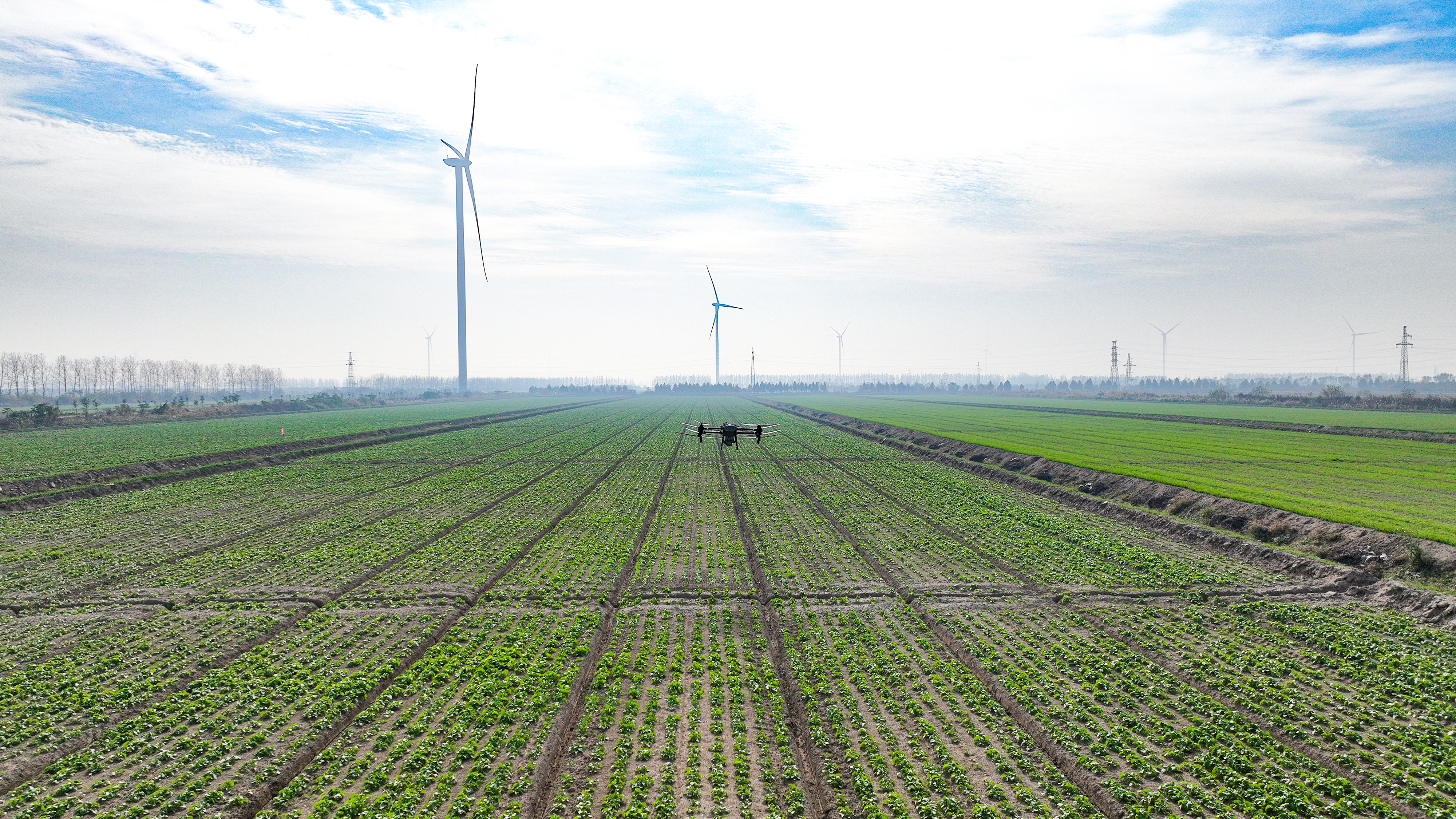 11月14日凌晨,在蘇墾農(nóng)發(fā)新洋分公司高標(biāo)準(zhǔn)農(nóng)田里,田間高聳林立的風(fēng)電機(jī)組與農(nóng)作物相互映襯,構(gòu)成一幅美麗的生態(tài)畫卷。近年來(lái),新洋充分發(fā)揮江蘇沿海風(fēng)力充足的資源優(yōu)勢(shì),與國(guó)信集團(tuán)合作,投資建設(shè)風(fēng)電項(xiàng)目,為當(dāng)?shù)鼐G色能源發(fā)展起到良好的推動(dòng)作用。