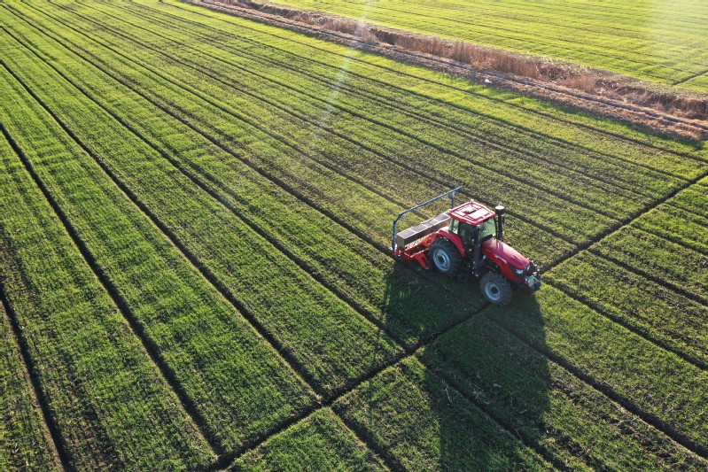 連日來(lái),蘇墾農(nóng)發(fā)崗埠分公司認(rèn)真做好小麥苗期管理工作,堅(jiān)持“一田一策”,分類管理。圖為在崗埠生產(chǎn)區(qū),農(nóng)機(jī)站改造好的播肥機(jī)在大田里給早苗播施分蘗肥,該播肥機(jī)將肥料通過(guò)機(jī)器直接播入土壤內(nèi)部,實(shí)現(xiàn)精量施肥并減少肥料損耗。