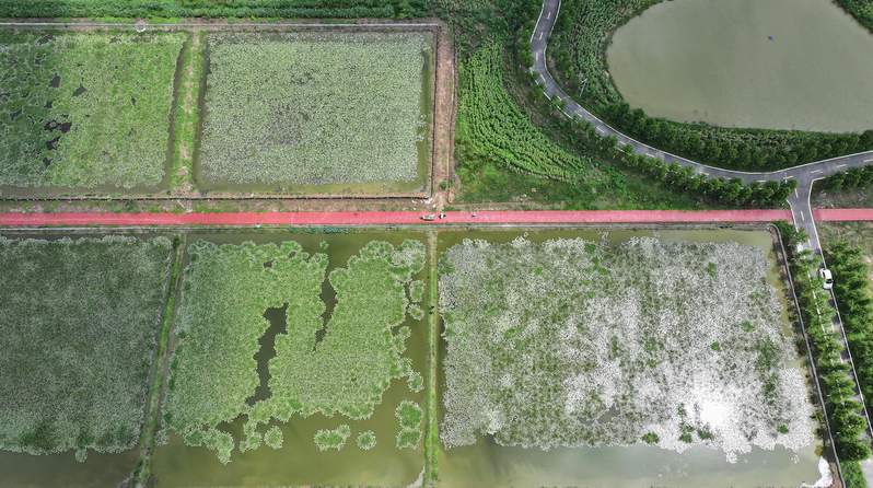 在云臺(tái)農(nóng)場(chǎng)云水灣濕地公園,40畝荷塘甲魚、60畝蟹蝦以及80畝魚塘相映成趣,通過“一水多用、種養(yǎng)循環(huán)”的生態(tài)模式,既守護(hù)了濕地生機(jī),更孕育出獨(dú)具特色的休閑垂釣新業(yè)態(tài)。