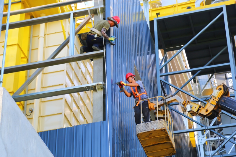 8月12日,在崗埠農(nóng)場(chǎng),建筑工人們配合大型吊車,加緊進(jìn)行糧食烘干倉(cāng)封頂作業(yè)。連日來,施工單位搶抓早晚有利時(shí)機(jī),抓緊推進(jìn)5G+智慧糧倉(cāng)建設(shè),爭(zhēng)取項(xiàng)目早日建成投產(chǎn),助力糧食安全。
