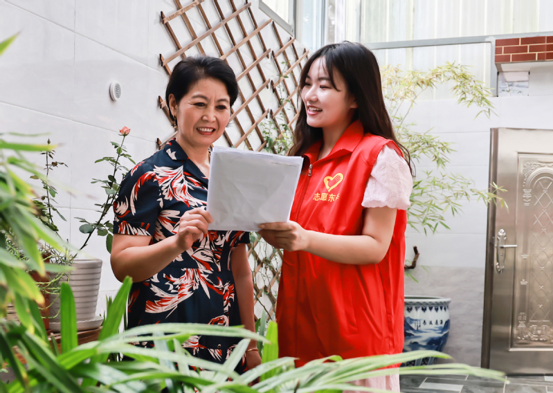 東辛加大“最美綠色家庭”創(chuàng)建宣傳力度,圖為社區(qū)黨政辦工作人員來到創(chuàng)建戶家里拍攝宣講視頻。