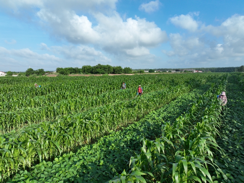 7月下旬以來,為促使玉米根莖葉同步良好發(fā)育、促進(jìn)玉米穗大粒多飽實(shí),同時(shí)兼顧大豆生長過程中對肥料的不同需求,蘇墾農(nóng)發(fā)淮海分公司對玉米、大豆復(fù)合種植的玉米穗肥,采取專用施肥機(jī)和人工定點(diǎn)施肥的方法,有效地保證了玉米穗期營養(yǎng)的供給。圖為淮海分公司第四生產(chǎn)區(qū)34大隊(duì)在組織專業(yè)施肥隊(duì)在施玉米穗肥。