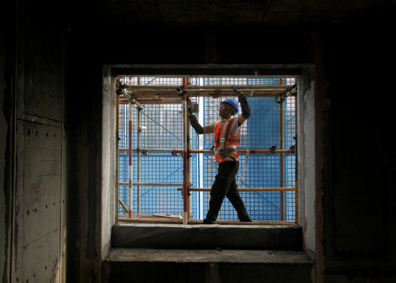通宇公司牢固樹立安全發(fā)展的理念,把安全生產(chǎn)擺在首要位置,積極開展安全隱患排查工作。圖為潤悅府腳手架工人開展日常安全檢查與維護(hù)。